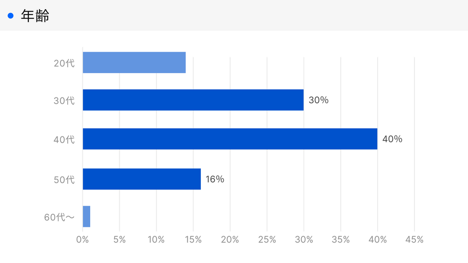 2025年における成約顧客の年齢は、40代が40%と最も多く、次点で30代の30%でした。ボリュームゾーンは30〜40代でしたが、 20代や50代にもそれぞれ15%近く分布しており、幅広い年代に不動産投資が広がっていることがうかがえます。