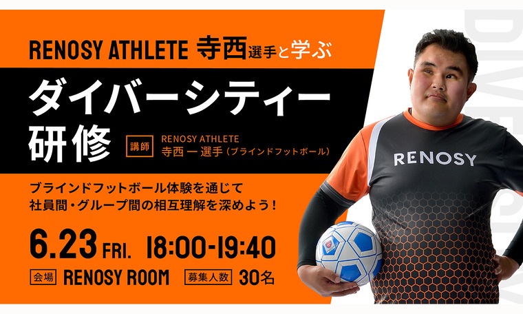 6月23日、東京2020パラリンピック出場選手であり、当社のRENOSY ATHLETEである寺西一選手とブラインドフットボール体験を通じたダイバーシティー研修を開催しました。